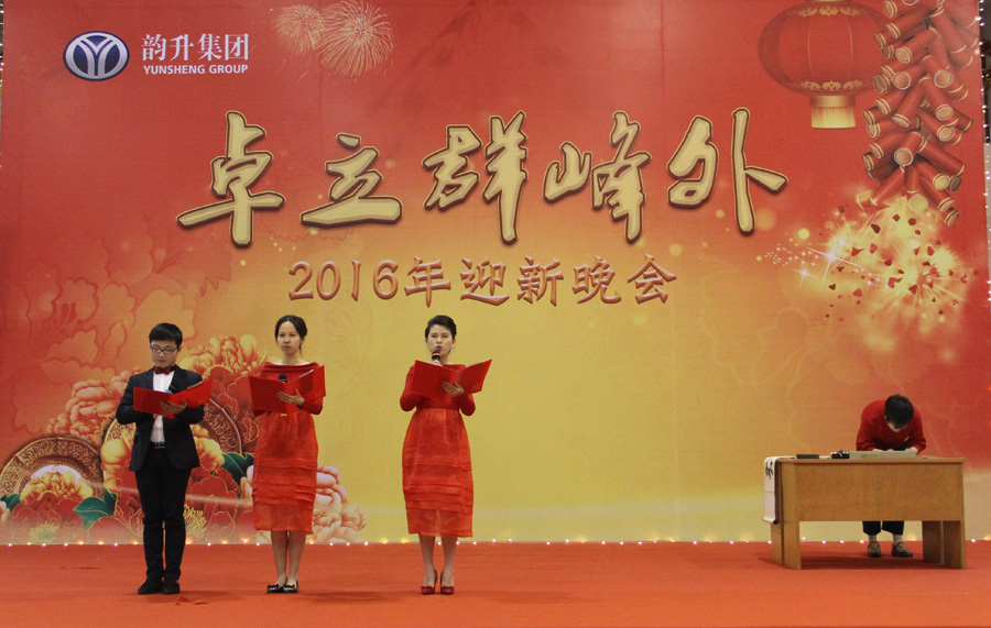 12月31日,团体公司“卓立群峰外”2016年迎新晚会在公司体育馆内隆重举行,会场精彩画面有: