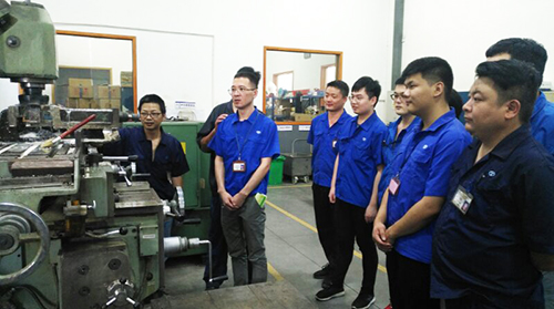 本次培训主要由制造部模具制作组经验富厚的3位老师傅做导师,共有生产计划科、质量科、自动成型科三个部门的8位治理员工加入培训。培训内容为平面磨床、钻床、车床、铣床、快走丝、中走丝六大设备的实战操作。