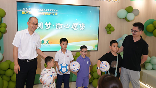 在7月23日鄞州区东郊街道关爱“小候鸟”系列运动开幕式上,我公司还作为爱心企业代表在现场为“足球微心愿”圆梦——4名“小候鸟”代表收获了专属于他们的足球。团体工会主席体现:“韵升有种种员工体育社团,每周都在开展运动。这个暑假leyu官网把员工子女也吸收进来,共享运动的快乐!”